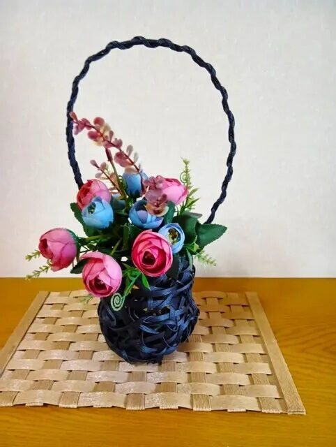 自然のツルで編んだようなこちらのカゴは、丸めた新聞紙にクラフトバンドを巻き付けていく独創的な編み方で作られます。