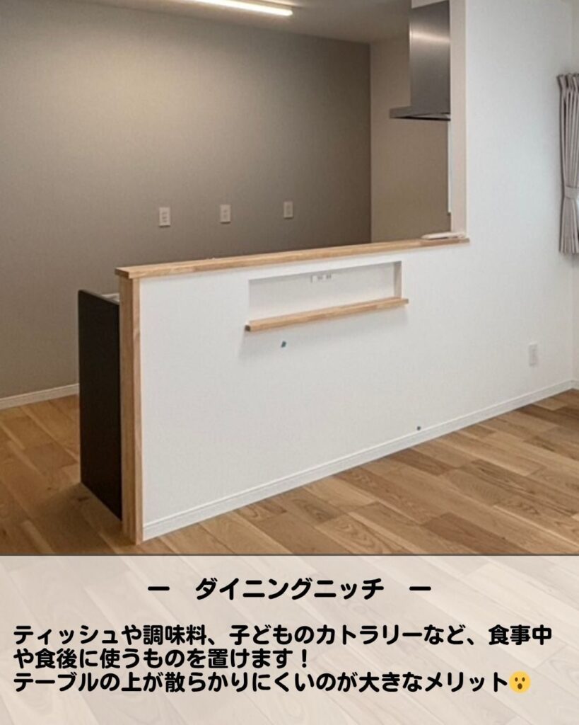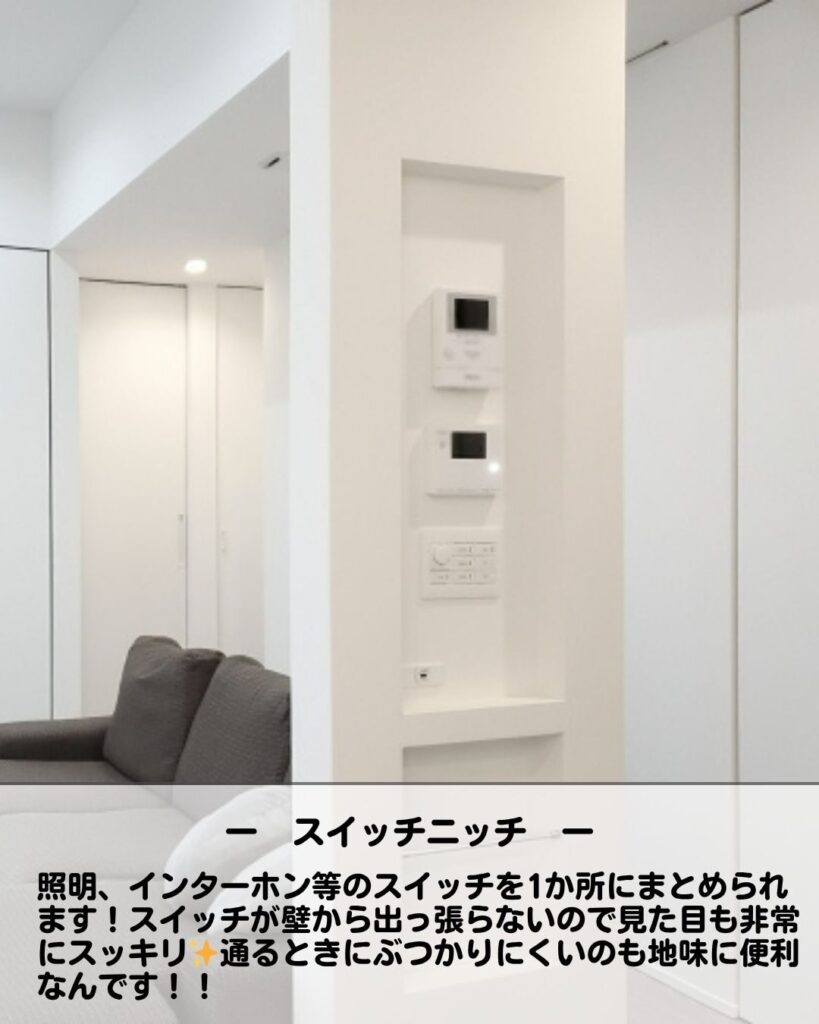 ニッチ(壁の厚みを利用したくぼみ)は空間を広く見せつつ、収納やアクセントとしてとても人気があります✨✨ リフォームや新築の参考にしてみてください😊