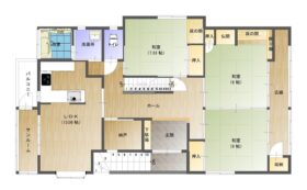 2階:和8帖×3、LDK13帖、UB、トイレ、洗面脱衣室、サンルーム、広縁、納戸