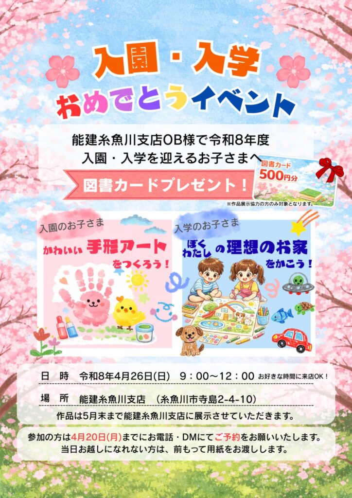 能建糸魚川支店のOB様で、今年度入園入学を迎えるお子さまに